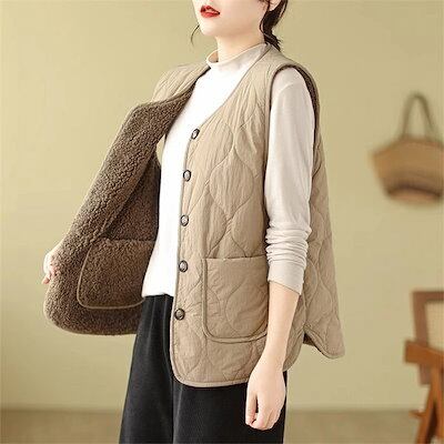 ボア ベスト リバーシブル レディース キルティングベスト 2way フリース ベスト 前ボタン ノースリーブ ダウンベスト アウター もこもこ 暖か トップス カジュアル きれいめ 可愛い シンプル