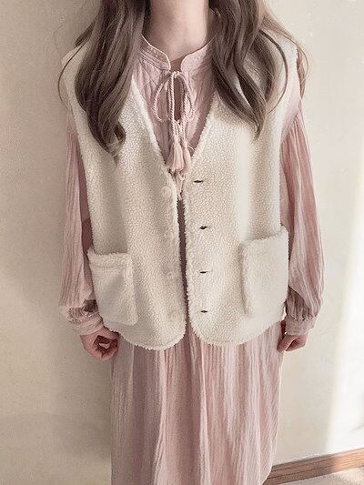 ボアベスト レディース ボア フリース ベスト vネック 前開き もこもこ ファーベスト 秋冬 アウター ポケット付き 無地 カジュアル お洒落 トップス ノースリーブ 羽織り 暖かい 防寒 大人 お