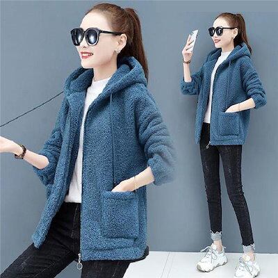 ボアジャケット レディース ボアパーカー ショート丈 フード付き 裏ボア ボアブル フリース 暖か アウター 無地 ふわふわ カジュアル おしゃれ