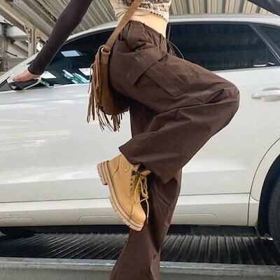 今っぽ ゆるダボ カーゴパンツ ブラウン カーゴ ワイドパンツ レディース ダボかわ ストリート メンズライク ワイルド カジュアル ドローコード バギーパンツ 古着っぽ