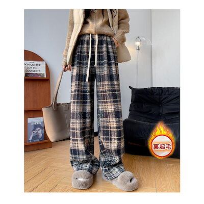 ワイドパンツ レディース 裏起毛 ボトムス チェック柄 バギーパンツ イージーパンツ カジュアル 保温 防寒 アウトドア クリスマス プレゼント 秋冬
