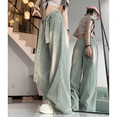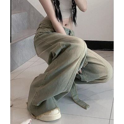 デニムパンツ デニムパンツ ワイド バギー ロング ゆったり サンド 太め レディース 韓国ファッション 大きいサイズ ストリート ヒップホップ 体型カバー 衣装