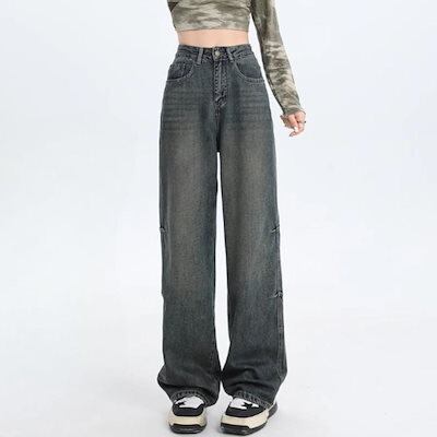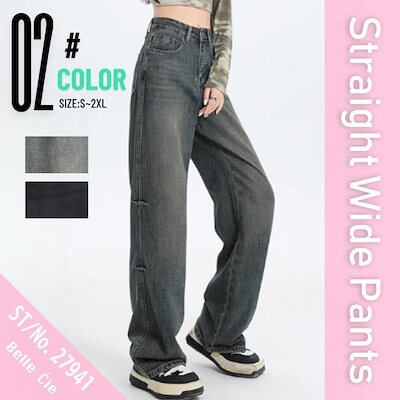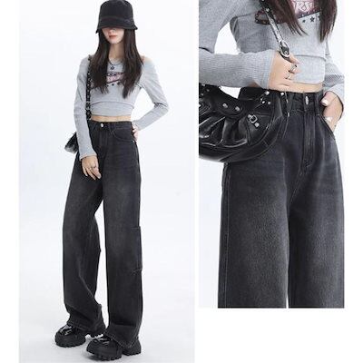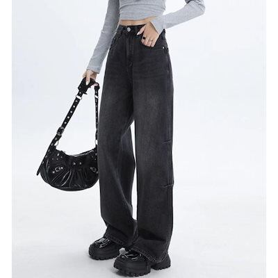 デニムパンツ デニム ズボン ジーパン ワイドパンツ ストレート シンプル レディース 黒 韓国ファッション ゆったり ストリート バギー 着回し 太め 流行り