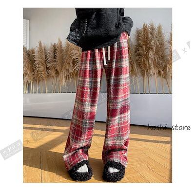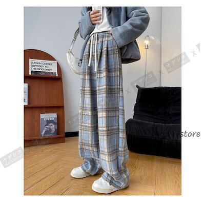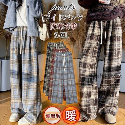 早く新品を選んで!ワイドパンツ レディース 裏起毛 ボトムス チェック柄 バギーパンツ イージーパンツ カジュアル 保温 防寒 アウトドア クリスマス プレゼント 秋冬