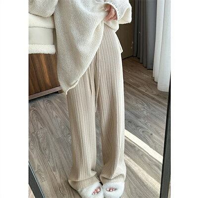 ワイドパンツ ニットパンツ レディース ニット ロングパンツ ウエストゴム 美脚 リラックス 暖い カジュアル ボトムス ケーブル編み ニットパンツ バギーパンツ イージーパンツ ゆったり カジュアル