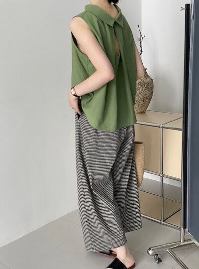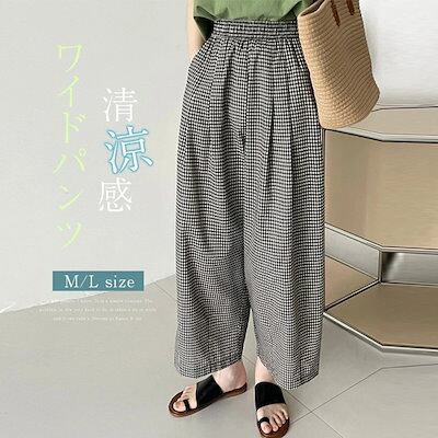ワイドパンツ レディース アンクル丈 ギンガムチェック柄 イージーパンツ 綿麻風 パンツ ボトムス 大人カジュアル ナチュラル 森ガール ズボンバギー ウエストゴム 大きいサイズ ゆったり 体型カバー