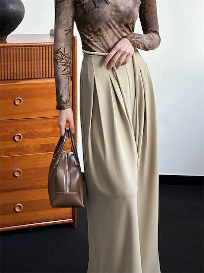 タックワイドパンツ レディース 春秋 パンツ ロングパンツ ガウチョパンツ 通勤 ボトムス 大人 リラックス オフィス フォーマル バギーパンツ イージーパンツ ゆったり カジュアル 体型カバー 上品