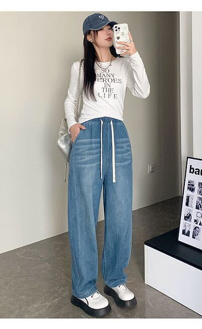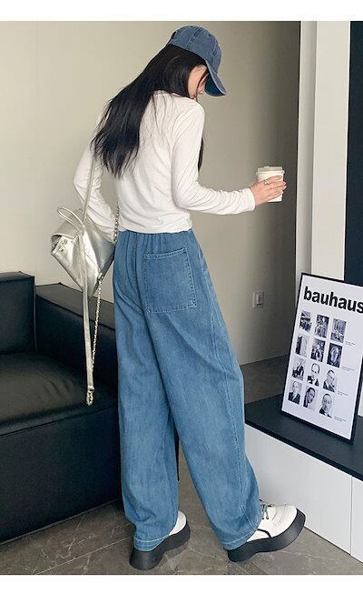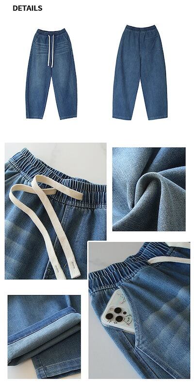 デニムワイドパンツ レディース デニム ワイド パンツ 春秋 ジーンズ ロングパンツ ボトムス イージーパンツ ガウチョ リラックス ウエストゴム ジーパン バギーパンツ ハイウエスト ゆったり おし