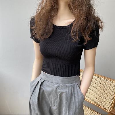 Tシャツ キャミソール レディース 通勤 夏服 ニット 半袖 フレンチ レトロトップス