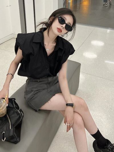 2024 夏 韓国トップス 半袖 Tシャツ 韓国 レイヤード風 着痩せスリムかわいいネックフレンチセクシーラウンドネックおしゃれスリーブカジュアルコーデショート丈ファッション系レディースお出かけ 黑安