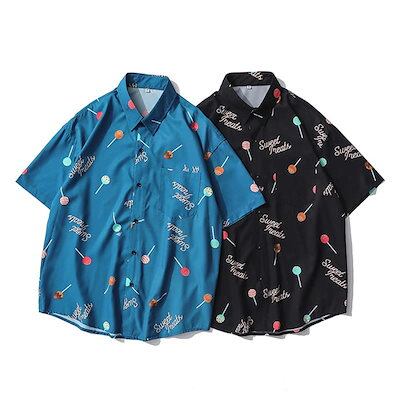 シャツ メンズ カップル服 古着 柄シャツ ブラウス 半袖 トップス レディース カジュアル オーバーサイズ ストリート風