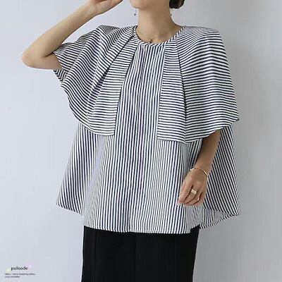 限定SALE!ブラウス ケープ レディース トップス ビッグカラー 半袖 ラウンドネック フレア フリル オフィス カジュアル きれいめ 大人 無地 上品 フォーマル ストラ