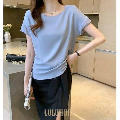 大人気 上品 トップス ブラウス シャツ レディース 半袖 きれいめ カジュアル エレガント おしゃれ 大人 可愛い 透け感 ゆったり 体型カバー シンプル オフィス