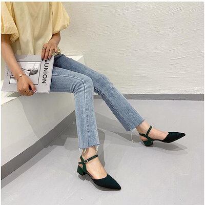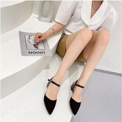 痛くない 歩きやすい 走れる パンプス ローヒール 365日しあわせパンプスシリーズ 5cmヒール ストラップ レディース パンプス ニット素材 サイドオープン ポイン