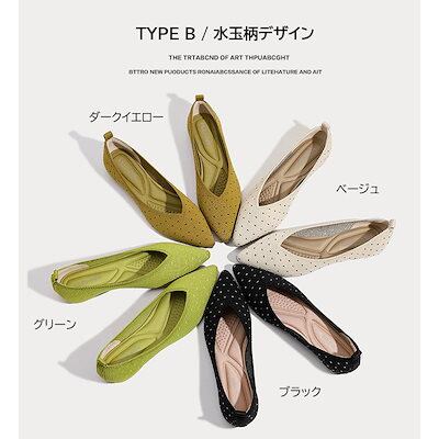 ニットVカットフラットパンプス ぺたんこ 歩きやすい 痛くない ポインテッドトゥ 21.5cm-26.5cm パンプス フラット レディース シューズ 黒 ブラック ベージュ