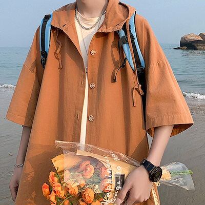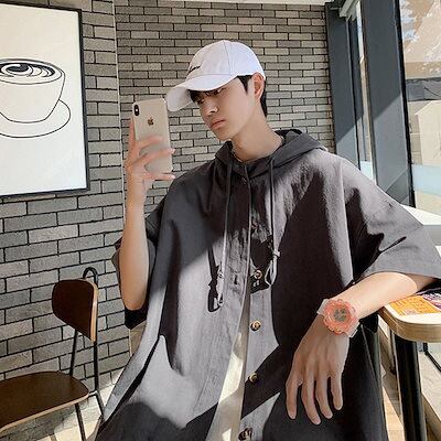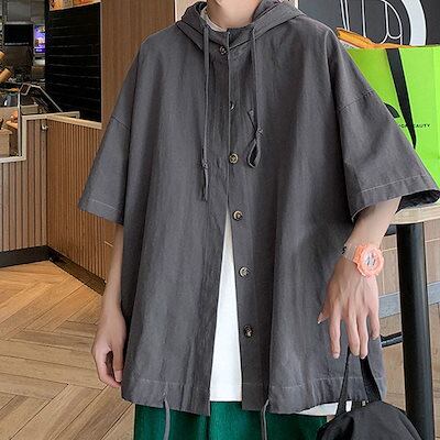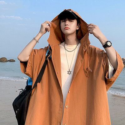 半袖シャツレディース 夏百掛け ins 流行り 無地 フード付きシャツ 薄手 コートトップスメンズ