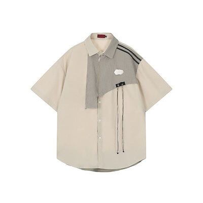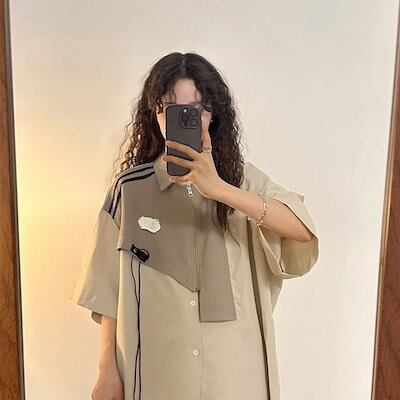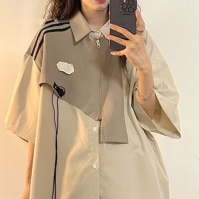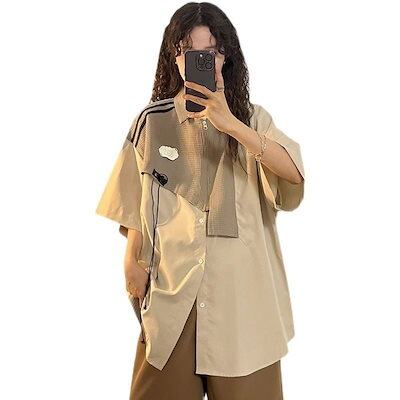 アメリカンレトロ デザイン 半袖シャツレディース カジュアルゆったりトップス夏 ワイシャツメンズ