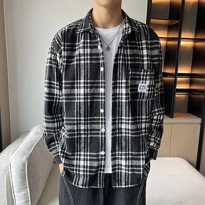 チェックブラウス特集メンズカジュアル長袖トップス韓国ファッションカーディガンアウター薄型シャツ大きいサイズレディースワイシャツ