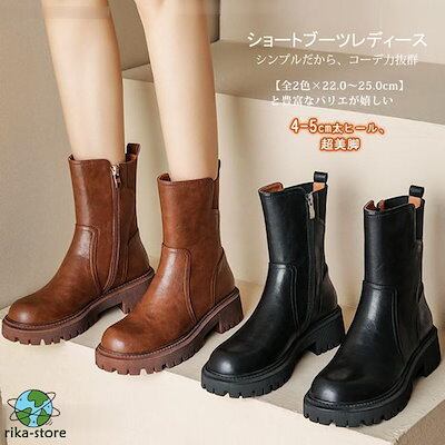 ショートブーツ レディース ショート丈 コーンヒール ウエスタンブーツ あるきやすい 軽い 異素材切り替え サイトゴム ラウンドトゥ