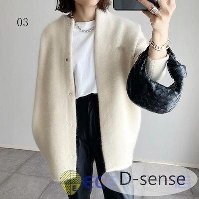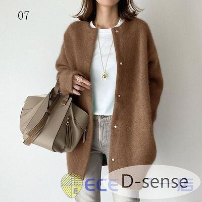 ニットカーディガン レディース 厚手 ゆったり ラクーン コクーン シャギー コート クルーネック ハイゲージ オーバーサイズ 大きめ ママ OL