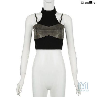 レースアップ レディース ヘソ出し トップス ギャザー ショート丈 ノースリーブ タートルネック ミニ丈 ダンス 衣装 へそ出し ブラック 韓国 ファッション ヒッ