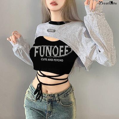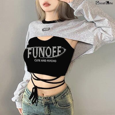 ダンス衣装 パーカー レディース トップス タンクトップ 韓国 ヒップホップ 長袖パーカ ストリート系 ファッション へそ出し 長袖 フーディ トレーナー 白 黒 シ
