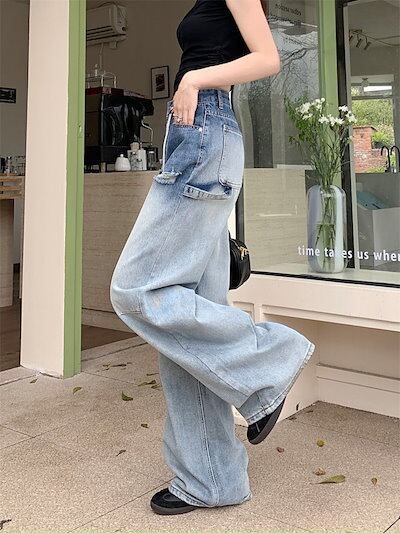 2024春夏パンツ デニム ジーンズ グラデーション ワイド ストレート ハイウエスト 脚長効果 美脚効果 細見え 春 カジュアル おしゃれ かわいい 韓国ファッション レディース お出かけ
