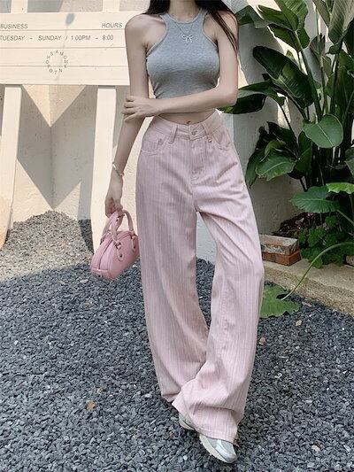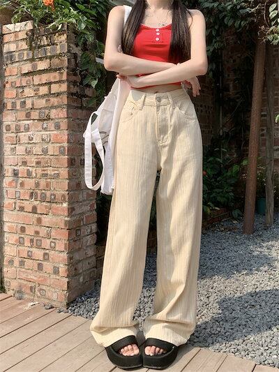 2024春夏パンツ デニム ジーンズ ロング丈 ワイド ストレート ハイウエスト 美脚効果 脚長効果 細見え 夏 白 黒 青 韓国ファッション レディース かわいい おしゃれ カジュアル お出かけ
