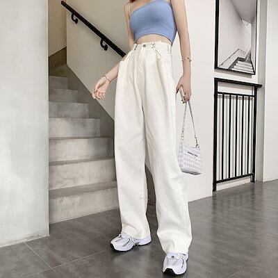 デニムパンツ韓国ファッション ストレート 美脚 デニムパンツ レディースポケット ブルー デニムジーンズ運動用デニムパンツデニムパンツ