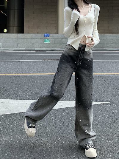 2024 春夏パンツ デニム ジーンズ スキニー レッグ ハイウエスト 脚長効果 美脚効果 細見え韓国 春 ライトブルー レディース系 カジュアル ズボンファッション加工 デザインお出かけ