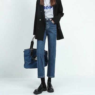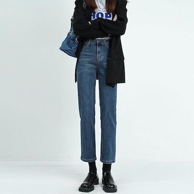 脚長効果!スキニーデニムパンツ テーパードパンツ ストレートジーンズ レディース 春新作 ゆったり ハイウエスト 九分丈 ストレートパンツ
