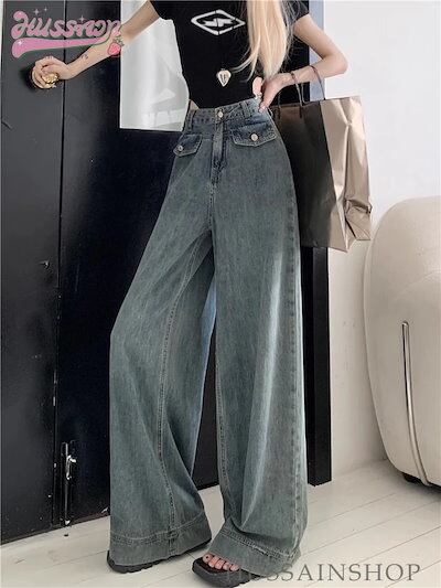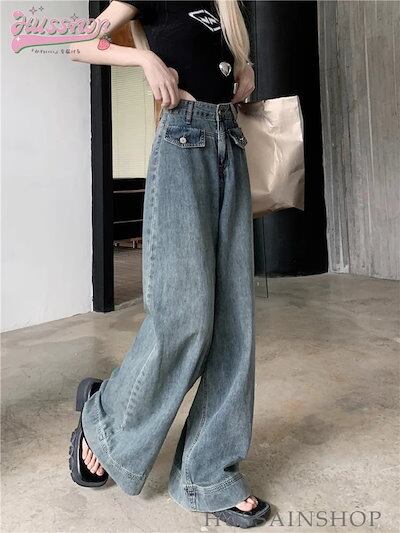 2024 春夏 ボトムスジーンズ デニム ハイウエスト 脚長効果 レッグ ファッション 足長効果 デニム ルーズ カジュアル スタイルアップ 脚長 美脚 クール かっこいい