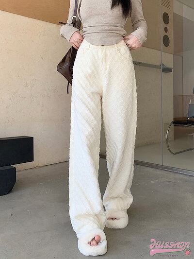 パンツ デニム ジーンズ モップパンツ ジャガード ワイド ストレート ハイウエスト 脚長効果 美脚効果 細見え 春 カジュアル ホワイト 白 韓国ファッション レディース お出かけ