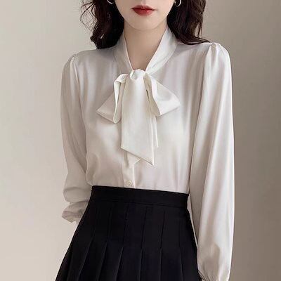 シャツブラウス ブラウス オフィス 大きいサイズ リボン タイ 白 長袖 ビジネス フォーマル 長袖シャツ ホワイト ブラック フリルシャツ 光沢 ラメ レディース