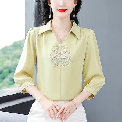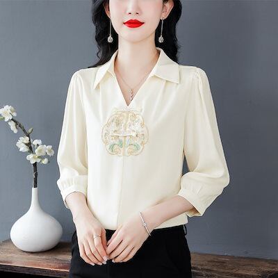 今っぽシアーシャツ 長袖 韓国 刺繍シャツ女春夏新気質痩せ見えママ七分袖トップス ブラウス レディースファッション オフィス カーディガン