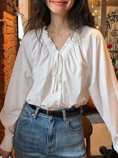 今っぽシアーシャツ 韓国 レトロVネックの白シャツ着やせ長袖雰囲気トップス ブラウス レディースファッション オフィス カーディガン
