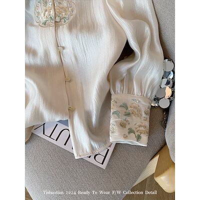 今っぽシアーシャツ 長袖 新中国風刺繍シャツ春夏 2024レトロ薄手トップス ブラウス レディースファッション オフィス カーディガン