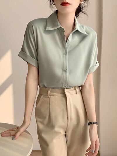 今っぽシアーシャツ 夏の薄手の半袖シャツ女性のゆったりした上着 韓国 ブラウス レディースファッション オフィス カーディガン