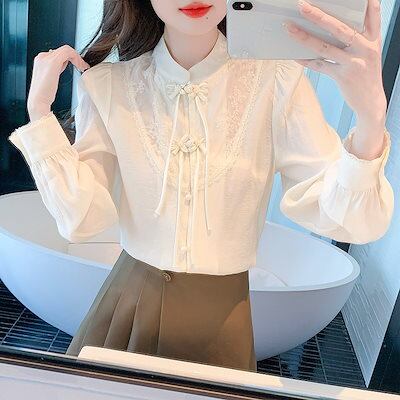今っぽシアーシャツ 長袖 2024早春の新中国風刺繍シャツ温和で甘いハイネックトップス 韓国 ブラウス レディースファッション オフィス カーディガン