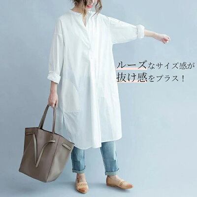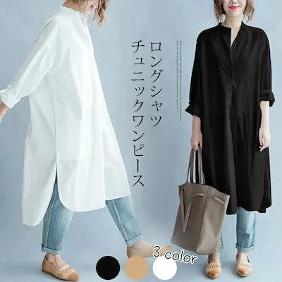 タイプ追加シャツワンピースロングシャツワンピース大きいサイズ秋ワンピースチュニックロングチュニックワンピース白長袖白シャツ紫外線対策UVカットレディースコットン100%綿体型カバー着痩せゆるシャツ