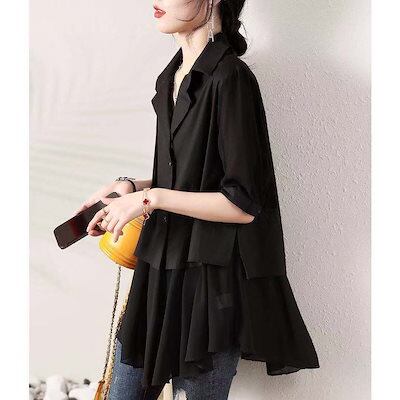 ブラウス?今っぽシアーシャツ 長袖ブラウス 韓国ファッション Tシャツ シフォンシャツ tシャツ レディース 着痩せブラウス カーディガン した ティーシャツ半袖/トップス/ブラウス