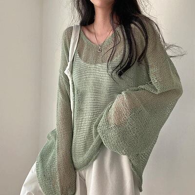 今っぽシアーシャツ レディースシャツ 春秋の新作 韓国ファッション chic フランス 復古 ゆとりがある 長袖 薄手ニット 日焼け止めカバー
