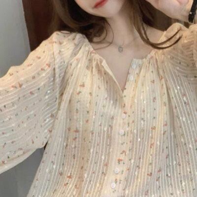 日系 春秋 ジェントルスタイル 花柄 ブラウス スイート 気質 シャツ 長袖 Tシャツ 快適 百掛け レディース 長袖 トップス