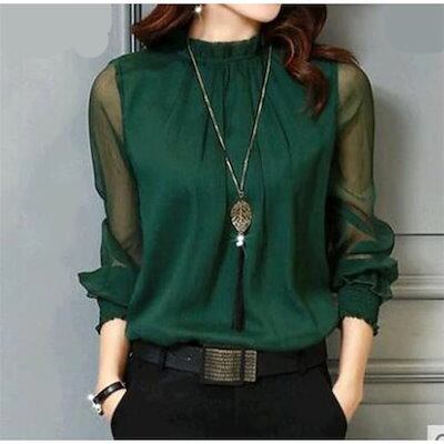 春 夏 人気なトップス シャツ ブラウス 長袖 トップス とろみシャツ シャツブラウス オフィス フォーマル おしゃれ シャツ シースルー プチハイネック レディース