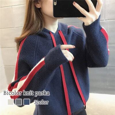 パーカー レディース バイカラーニットパーカ オーバーサイズ ジャケット スウェット おしゃれ 厚手 大きめ 長袖 グレー 大きいサイズ かわいい 冬 ロング トレーナー 春 韓国 人気 ジップ 秋