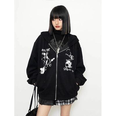 今秋冬韓国かわいいレディースフード付きアウターブルゾン長袖シルエットトップスサイド冬カジュアルファッションサイズお出かけダブル丈トラック