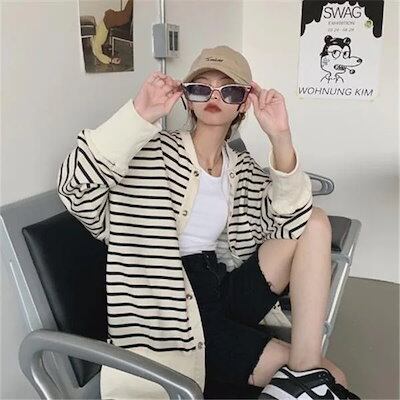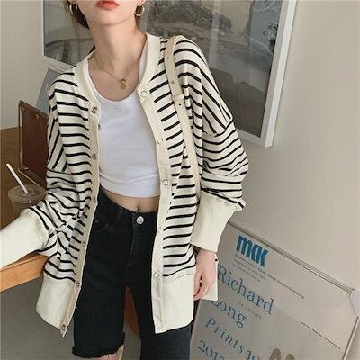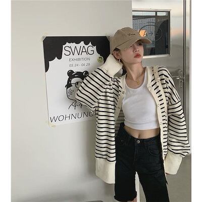 秋作パーカージャケットレディースボーダー柄ジップアップパーカーチュニック長袖ゆったり体型カバーカジュアルアウター