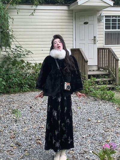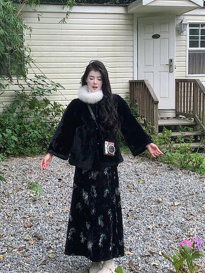 秋冬防寒あったか厚手アウター韓国風スタイルアップ小花かわいい ブルゾンファー付きファッション系裹起毛大人ゆったりカジュアルストリートサイズレディースムートン襟フェイクシルエット学生通学ショート丈エコ