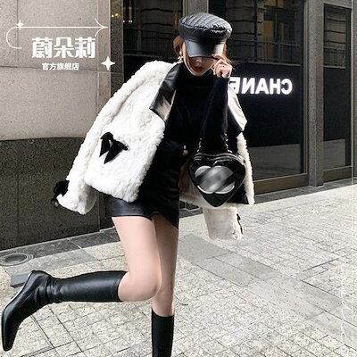 秋冬防寒 あったか 中綿 アウター韓国風スタイルアップ かわいいブルゾンファー付きファッション系裹起毛大人ゆったりカジュアルエコストリートサイズレディースムートン襟シルエット学生通学丈フェイク