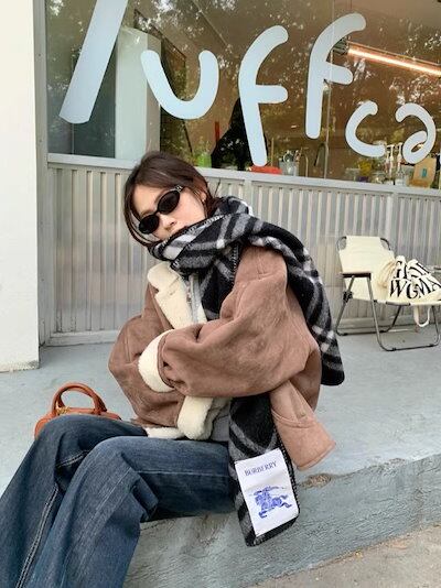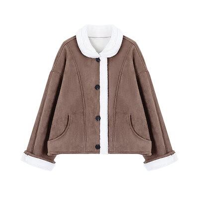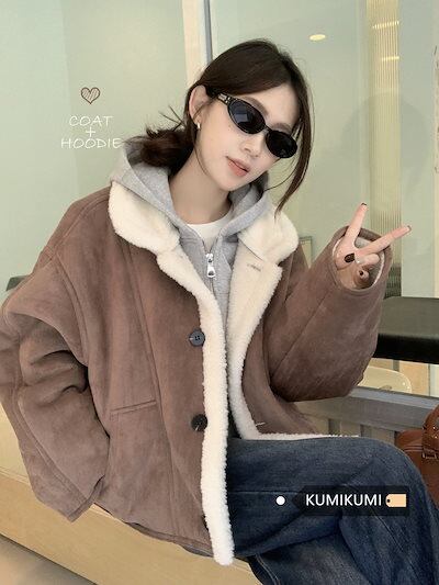 秋冬防寒 あったかアウター 韓国風コートスタイルアップ かわいい ブルゾンファー付きファッション系裹起毛大人ゆったりカジュアルストリートサイズレディースムートン襟ゆるダボ シルエット学生通学丈